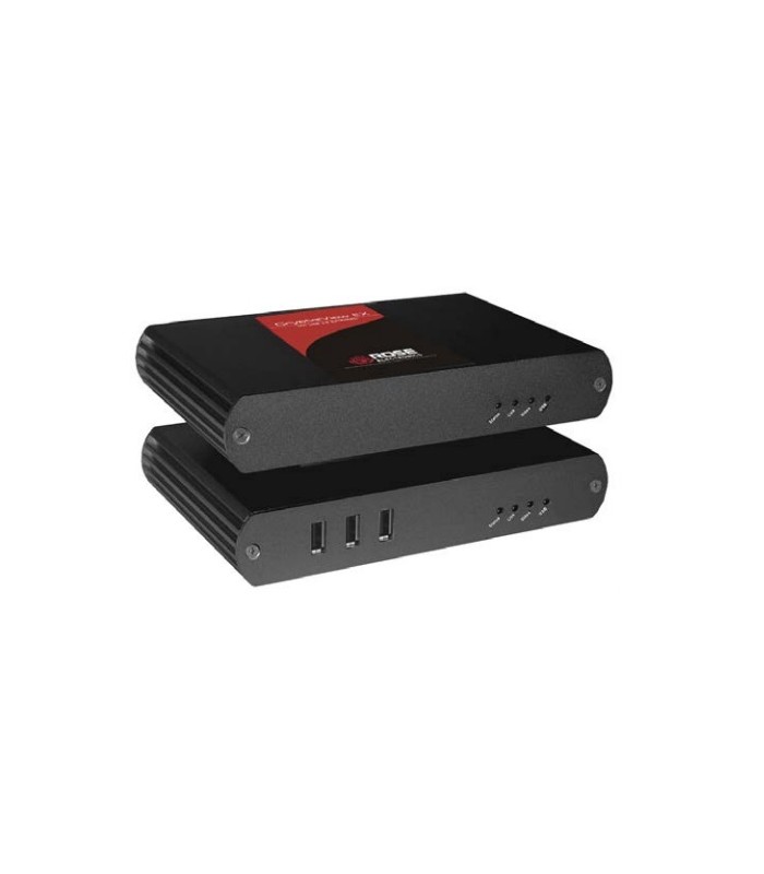 | Connecteurs | Transmetteur: DVI video: DVI female USB host: USB Type B Link: RJ45 jack Power: Barrel jack Recepteur: DVI video: DVI female USB device: Three USB Type A, 500ma each Link: RJ45 jack Audio: Two 3.5mm stereo jacks Power: Barrel jack |