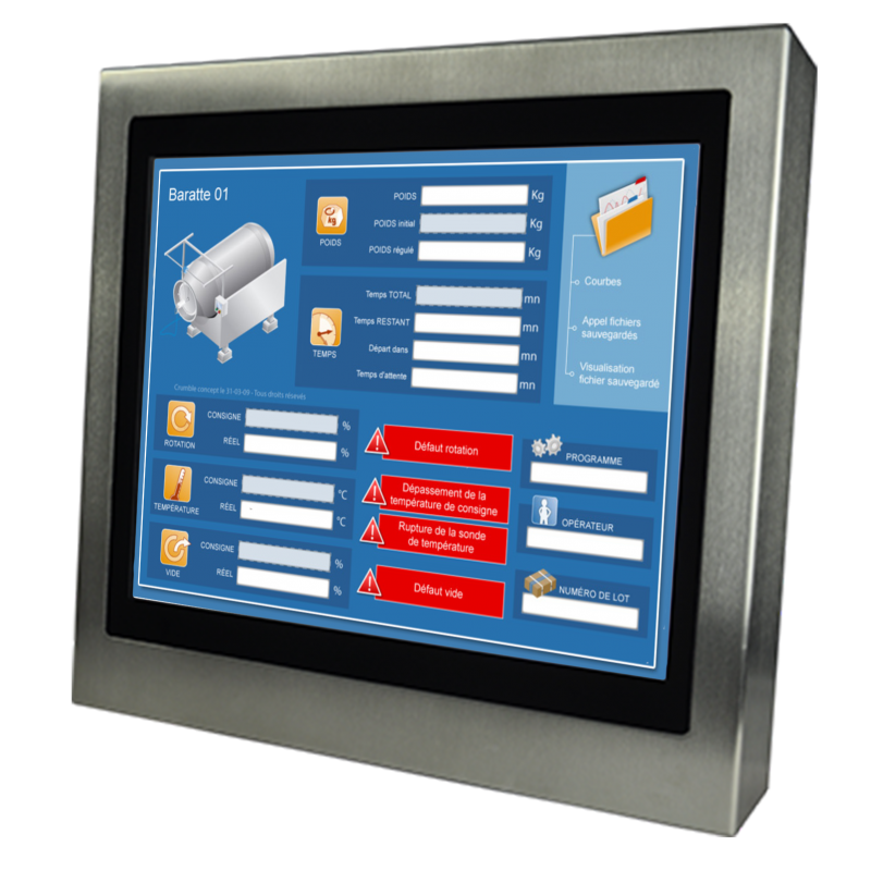 Avec leur châssis en Inox, ces écrans sont étanches et utilisables partout, même dans les environnements les plus hostiles.